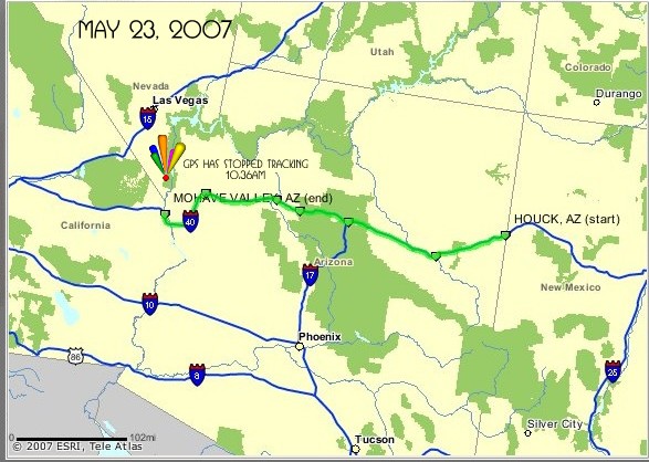 GPS has stopped tracking - Stephan is actually past Las Vegas |